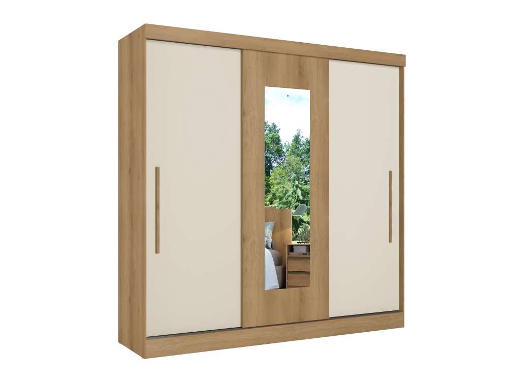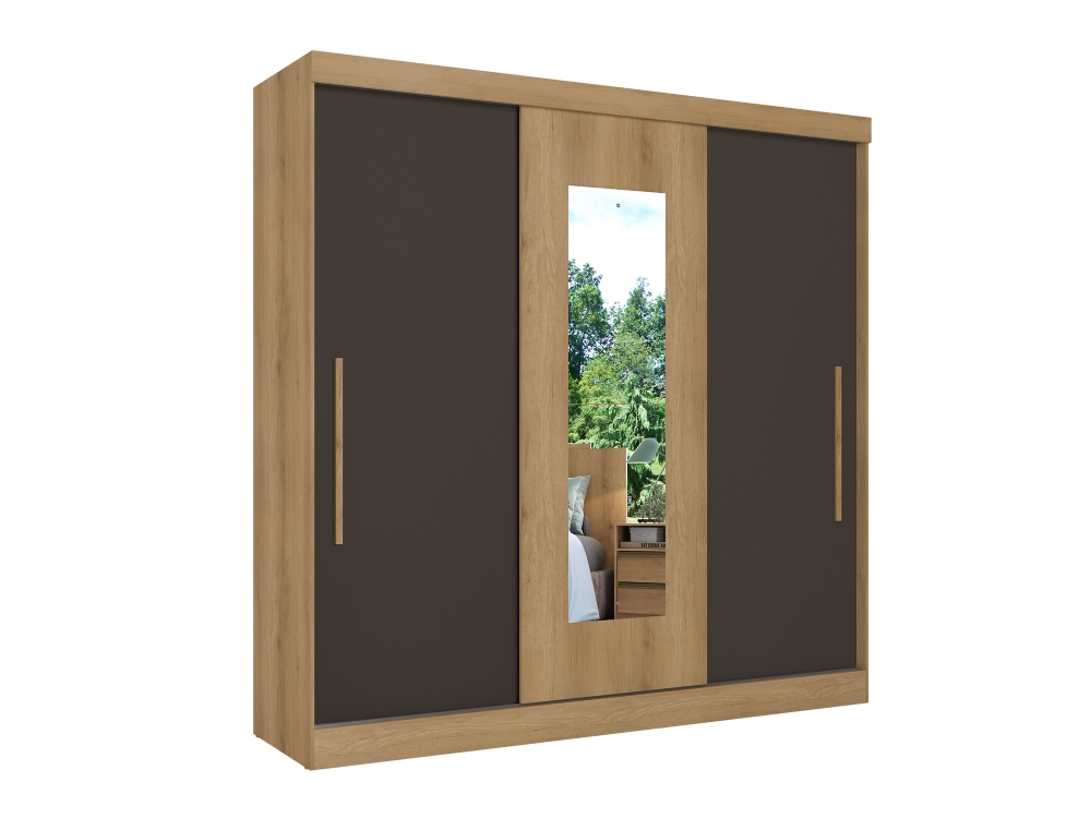 O roupeiro Vision é um produto de conceito contemporâneo, que conjuga beleza e criatividade. É constituído de 3 portas de correr. Seu amplo espaço interno possui cabideiro, excelente número de prateleiras que auxiliam na divisão e organização das roupas. Possui 2 gavetas internas que conferem conforto e praticidade ao móvel. Excelente sistema de portas de correr com base em alumínio proporcionando um movimento suave e preciso das mesmas. Possui espelho na porta central.