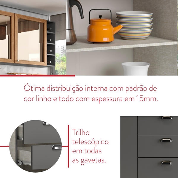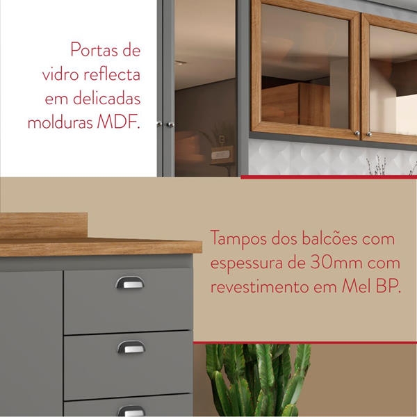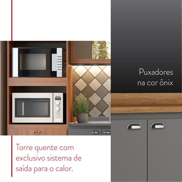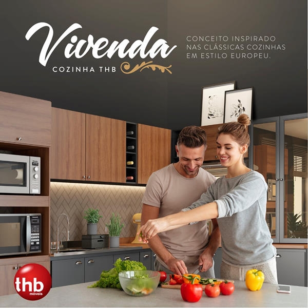 Cozinha Vivenda 16/05/2020 A cozinha Vivenda traz um belo conceito inspirado nas clássicas cozinhas em estilo europeu, unindo qualidade, design e uma perfeita combinação nas cores Grafite e Mel BP.