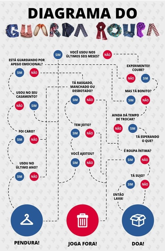 Manter o guarda roupa arrumado não precisa ser um sofrimento! O segredo é criar uma rotina para conservar a organização. Então, uma vez por semana ou a cada três dias reserve uns minutos para devolver tudo ao local certo, isso já basta para garantir mais limpeza e praticidade. Abaixo, as mais valiosas dicas para dar fim à desordem que só ocupa espaço e dificulta sua vida na hora de escolher o look do dia. Anote e adote!