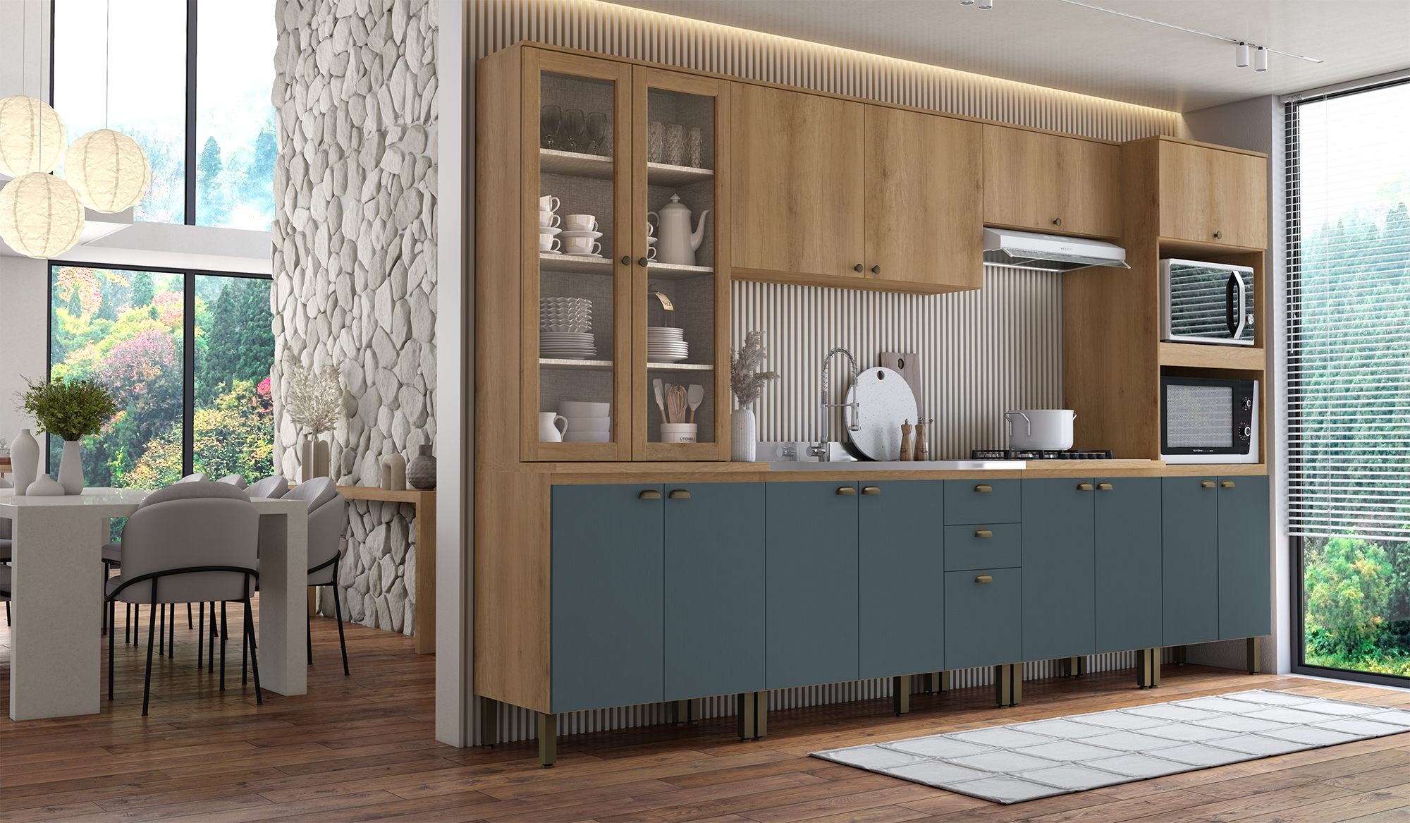 Apresentamos a nova cozinha THB Finesse no padrão de cor Capuccino com Azul. Esta cozinha combina estilo, funcionalidade e elegância para criar um espaço perfeito para você!Com armários e gavetas espaçosos, fabricados com materiais de alta qualidade, o padrão de cor Capuccino com Azul traz um contraste suave e sofisticado, adicionando um toque contemporâneo à sua cozinha.A linha Finesse oferece recursos práticos e inteligentes. Os armários e gavetas foram projetados para fornecer amplo espaço de armazenamento, permitindo que você organize seus utensílios e mantimentos de forma eficiente. As portas possuem sistema de fechamento suave com amortecimento, garantindo um funcionamento silencioso e evitando batidas indesejadas. Já as gavetas possuem trilhos telescópicos que permitem uma abertura ampla e suave.Elegante escolha para aqueles que buscam um ambiente moderno e acolhedor, essa cozinha certamente se tornará o coração da sua casa! Venha conhecer a cozinha THB Finesse!