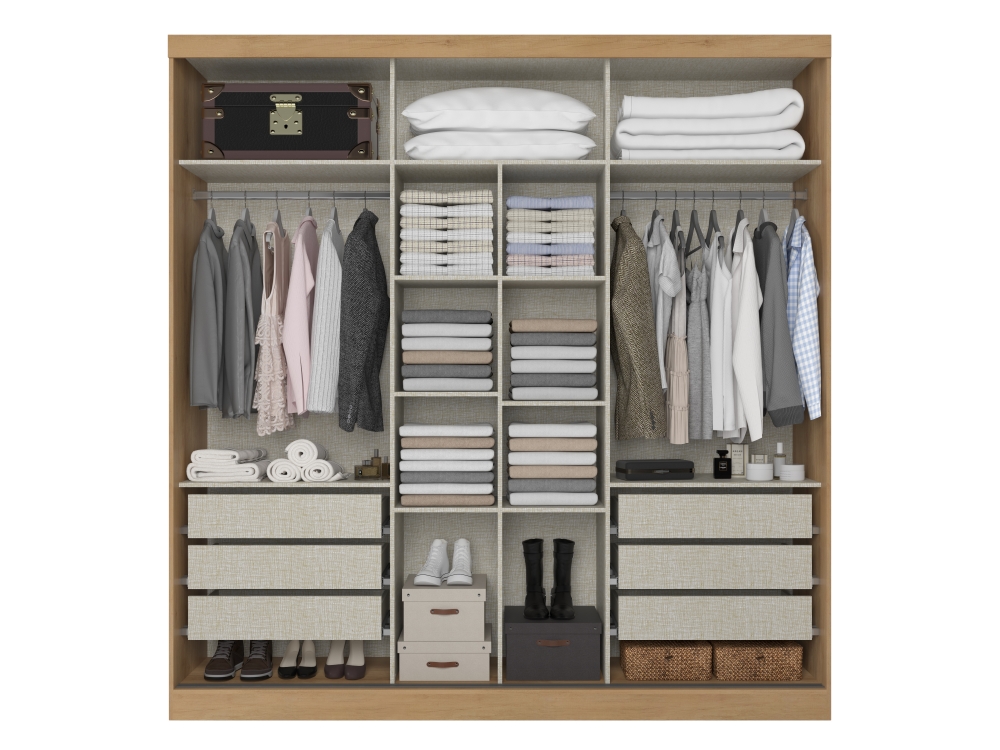 O roupeiro THB Málaga combina elegância, funcionalidade e excelente aproveitamento de espaço. Fabricado 100% em MDF, garante durabilidade e qualidade superior. Com dimensões de 2,22 m de largura, 2,30 m de altura e 0,55 m de profundidade, é perfeito para organização. Possui uma divisão prática “ele/ela” e várias prateleiras, oferecendo amplo espaço para roupas, acessórios e outros itens. Ideal para quem busca um móvel moderno e eficiente para o quarto.