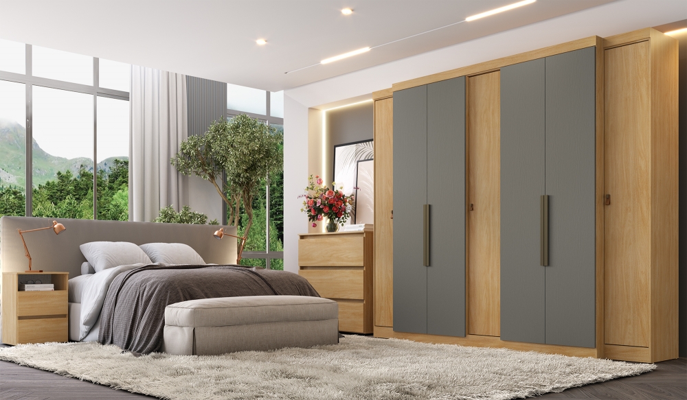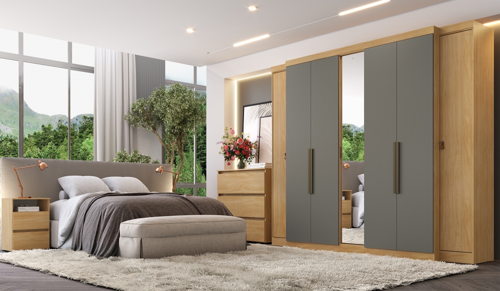 Conheça o Roupeiro THB Supremo 7 portas, um produto que une praticidade e elegância para o seu espaço. Com suas 7 portas, ele oferece amplo espaço de armazenamento, perfeito para organizar roupas, acessórios e muito mais. Produzido 100% em MDF de alta qualidade, garante durabilidade e um acabamento sofisticado. Além disso, conta com 4 gavetas internas que facilitam a organização de seus pertences. Suas medidas de 2,66m de comprimento, 2,30m de altura e 0,55m de profundidade fazem do Roupeiro THB Supremo uma escolha ideal para ambientes espaçosos e elegantes. E melhor ainda: em uma nova configuração de cor, que ficou excelente e já é sucesso de vendas: NOGAL/GRISS.
