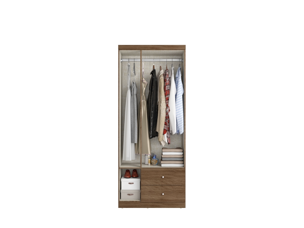 A linha de roupeiros Charm Plus foi construída conjugando beleza e praticidade, pensando em ambientes menores e buscando o máximo de aproveitamento. Seu interno possui ótimo espaço para guardar roupas e objetos, espaço para cabideiros e também calçados. A pintura interna linho garante leveza e amplitude para o móvel. Duas gavetas externas grandes e os delicados puxadores ponto dão o toque final no produto.