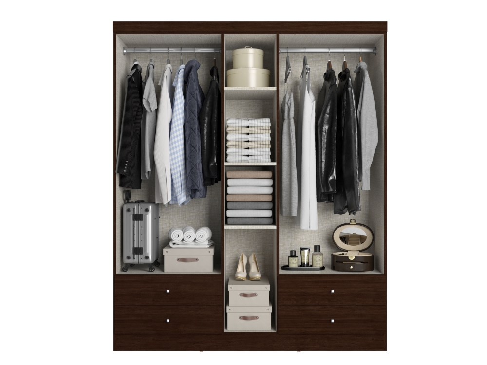 A linha de roupeiros Shine Plus foi construída conjugando beleza e praticidade, pensando em ambientes menores e buscando o máximo de aproveitamento. Possui 4 gavetas externas com corrediças metálicas, excelente divisão interna, puxadores ponto e um perfeito acabamento com impressão em vernizes especiais.