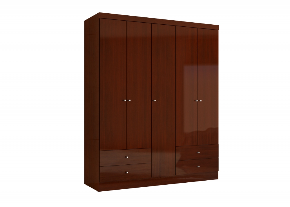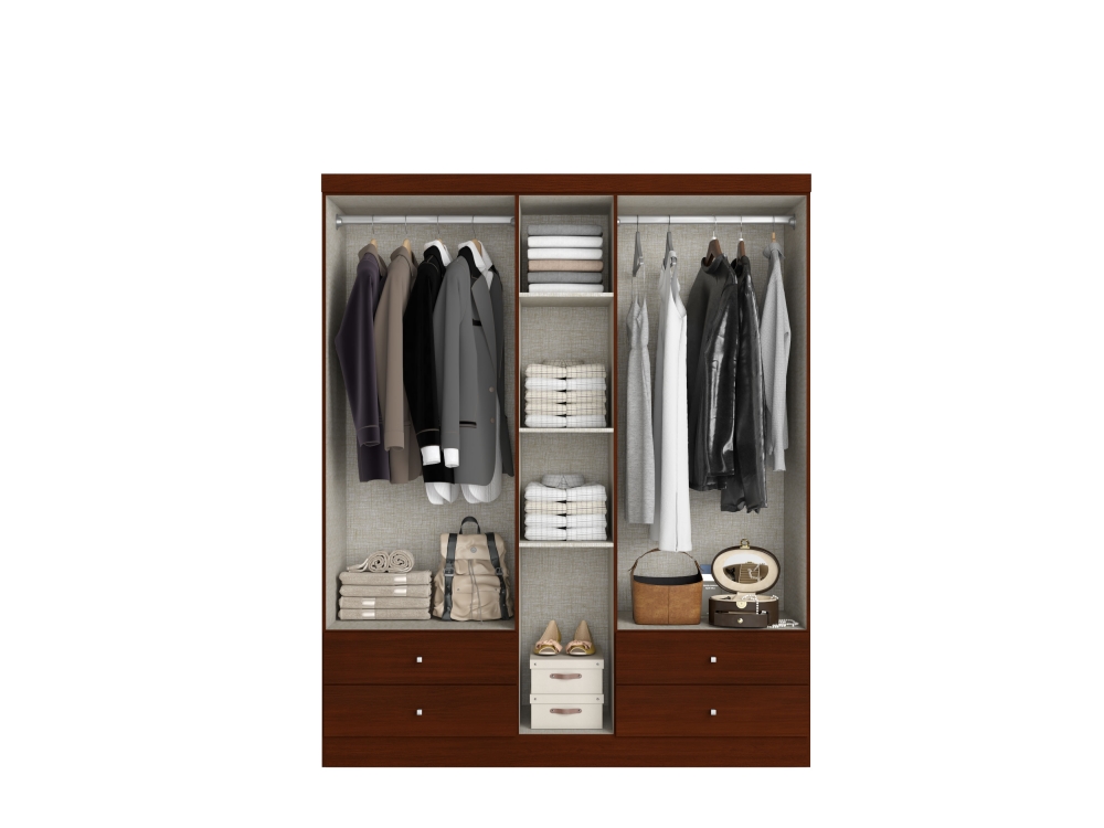 A linha de roupeiros Prince foi construída conjugando beleza e praticidade, pensando em ambientes menores e buscando o máximo de aproveitamento. Possui 4 gavetas externas com corrediças metálicas, excelente divisão interna, puxadores ponto e um perfeito acabamento com impressão em vernizes especiais. Pintura interna no padrão linho.