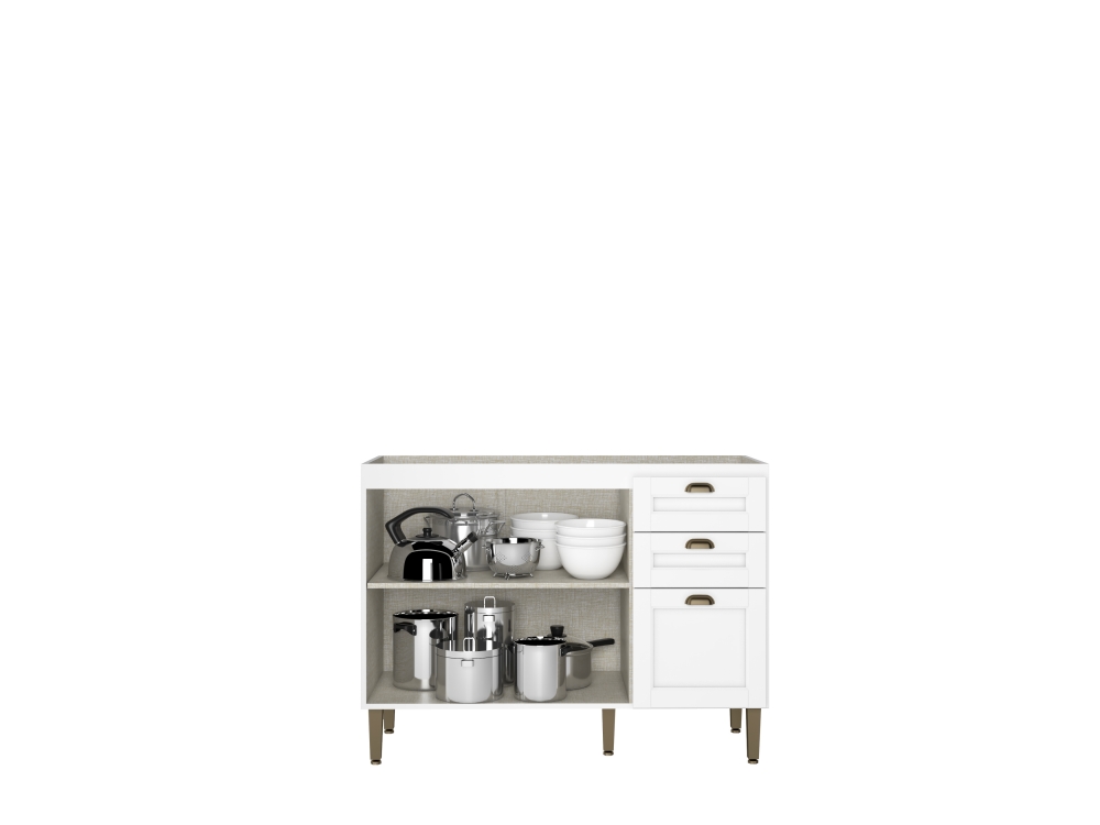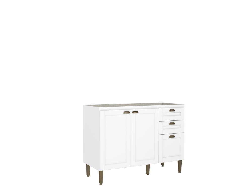 CC200 - Balcão 120cm 2P 3Gav Sem Tampo Classy Branco