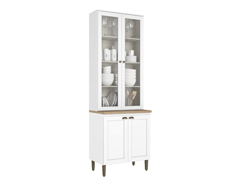 CC320V - Cristaleira 80cm 4P Classy de Vidro Branca c| Carvalho Mel