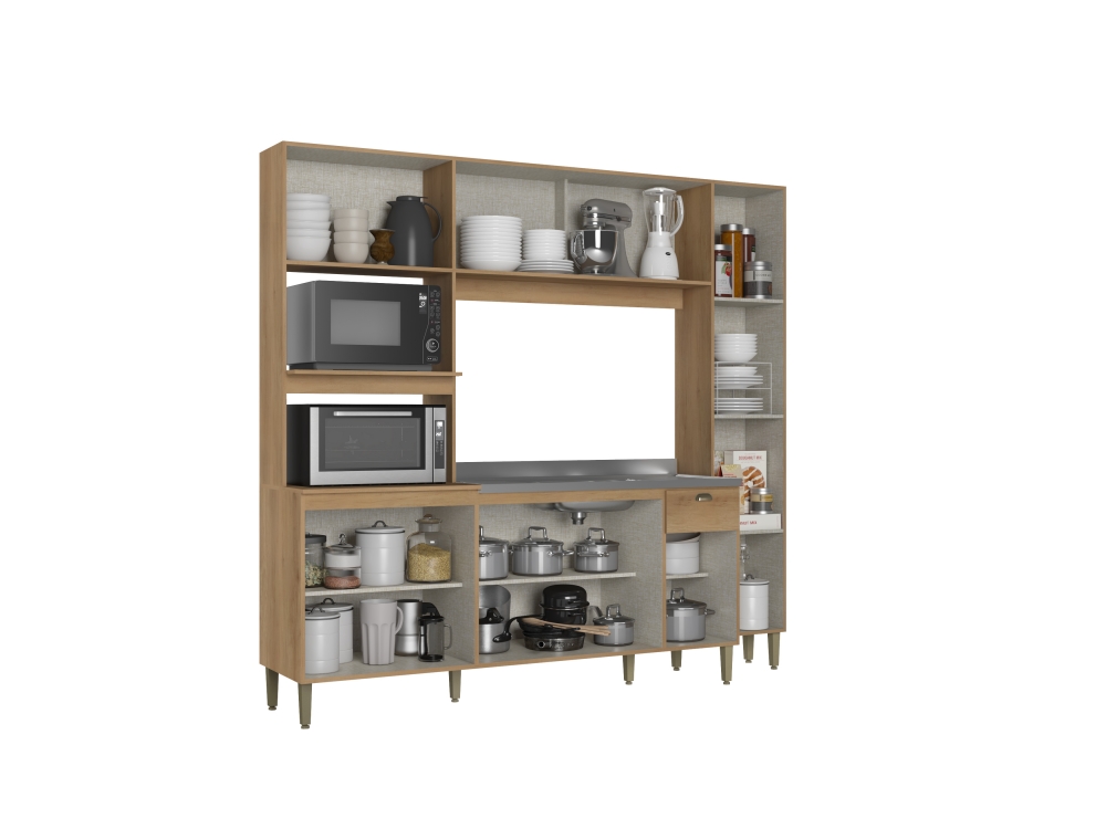 A THB buscou uma nova forma de se expressar para criar a cozinha Moderna, de um conceito único, criativa e completa e que conecta a vida moderna e esse novo momento. Possui uma referência harmônica de cores e combinações, através do lindo padrão madeirado Capuccino, combinado com portas superiores Off White, puxadores e pés no acabamento bronze que imprimem personalidade e possibilitam muitas combinações ao ambiente. Experimente o novo! Inspire-se com a nova cozinha Moderna!