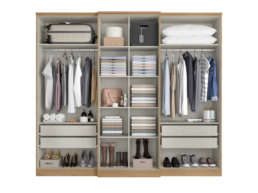 O Roupeiro Valência é um móvel de alta qualidade e elegância, ideal para quem busca organização e praticidade no dia a dia. Suas 6 portas com dobradiças de 35mm com amortecimento, 4 gavetas grandes internas com trilho telescópico, 6 puxadores grandes em MDF e um nicho completo com muitas prateleiras, oferece muita praticidade para acomodar roupas, calçados e acessórios, mantendo tudo sempre organizado. Fabricado com materiais de primeira linha, o Roupeiro Valência conta com estrutura em MDP de 15mm e acabamento em pintura UV, garantindo durabilidade e resistência.