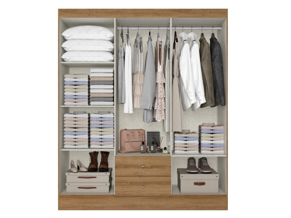 A linha Astro tem um conceito contemporâneo, produzido em MDP de alta qualidade. O roupeiro Astro é constituído de 6 portas e 2 gavetas externas, garantindo beleza e modernidade, seus puxadores ponto dão o toque final ao produto. Seu amplo espaço interno possui cabideiro, maleiro e prateleiras, uma excelente divisão conferindo conforto e praticidade ao móvel.