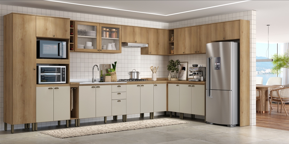 Apresentamos a nova cozinha THB Finesse no padrão de cor Capuccino com Off White. Esta cozinha combina estilo, funcionalidade e elegância para criar um espaço perfeito para você!Com armários e gavetas espaçosos, fabricados com materiais de alta qualidade, o padrão de cor Capuccino com Off White traz um contraste suave e sofisticado, adicionando um toque contemporâneo à sua cozinha.A linha Finesse oferece recursos práticos e inteligentes. Os armários e gavetas foram projetados para fornecer amplo espaço de armazenamento, permitindo que você organize seus utensílios e mantimentos de forma eficiente. As portas possuem sistema de fechamento suave com amortecimento, garantindo um funcionamento silencioso e evitando batidas indesejadas. Já as gavetas possuem trilhos telescópicos que permitem uma abertura ampla e suave.Elegante escolha para aqueles que buscam um ambiente moderno e acolhedor, essa cozinha certamente se tornará o coração da sua casa! Venha conhecer a cozinha THB Finesse!