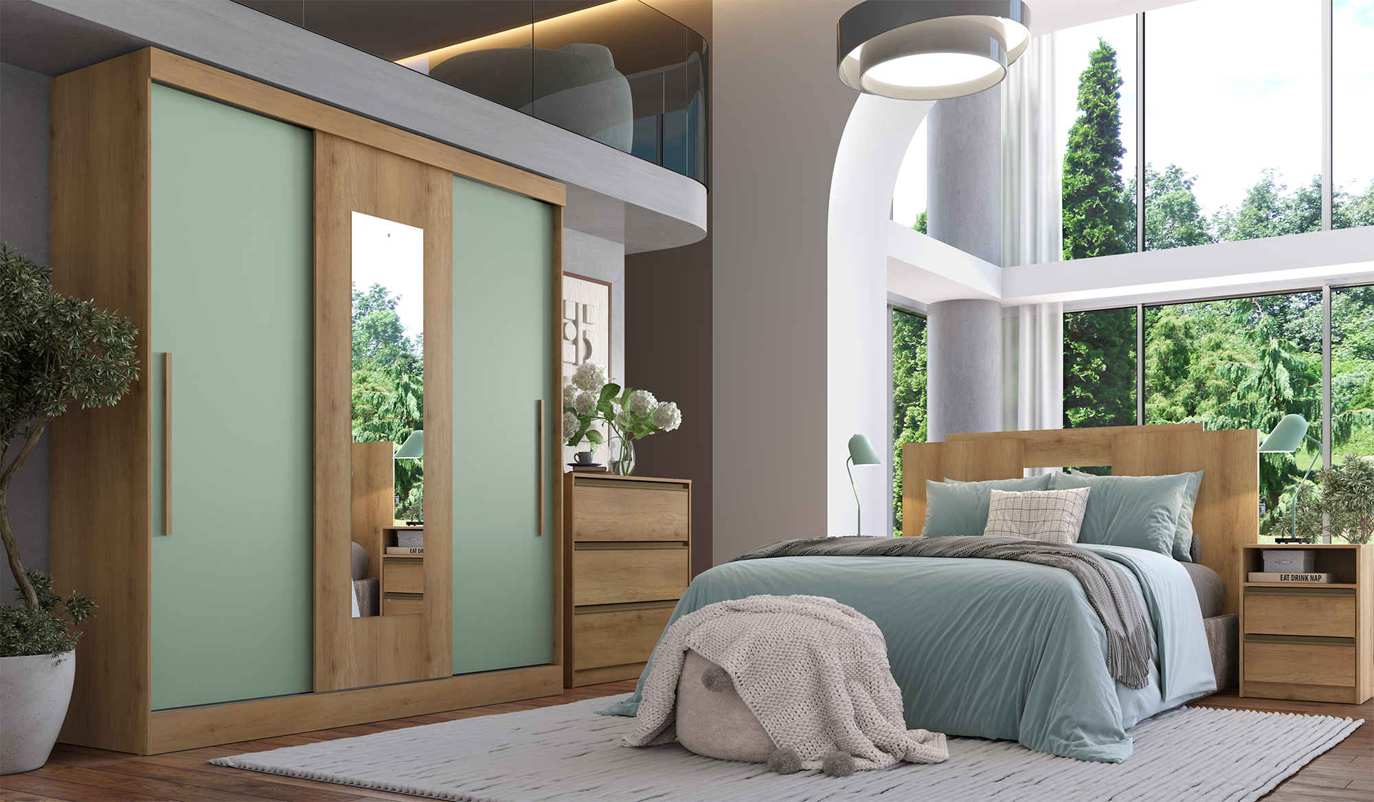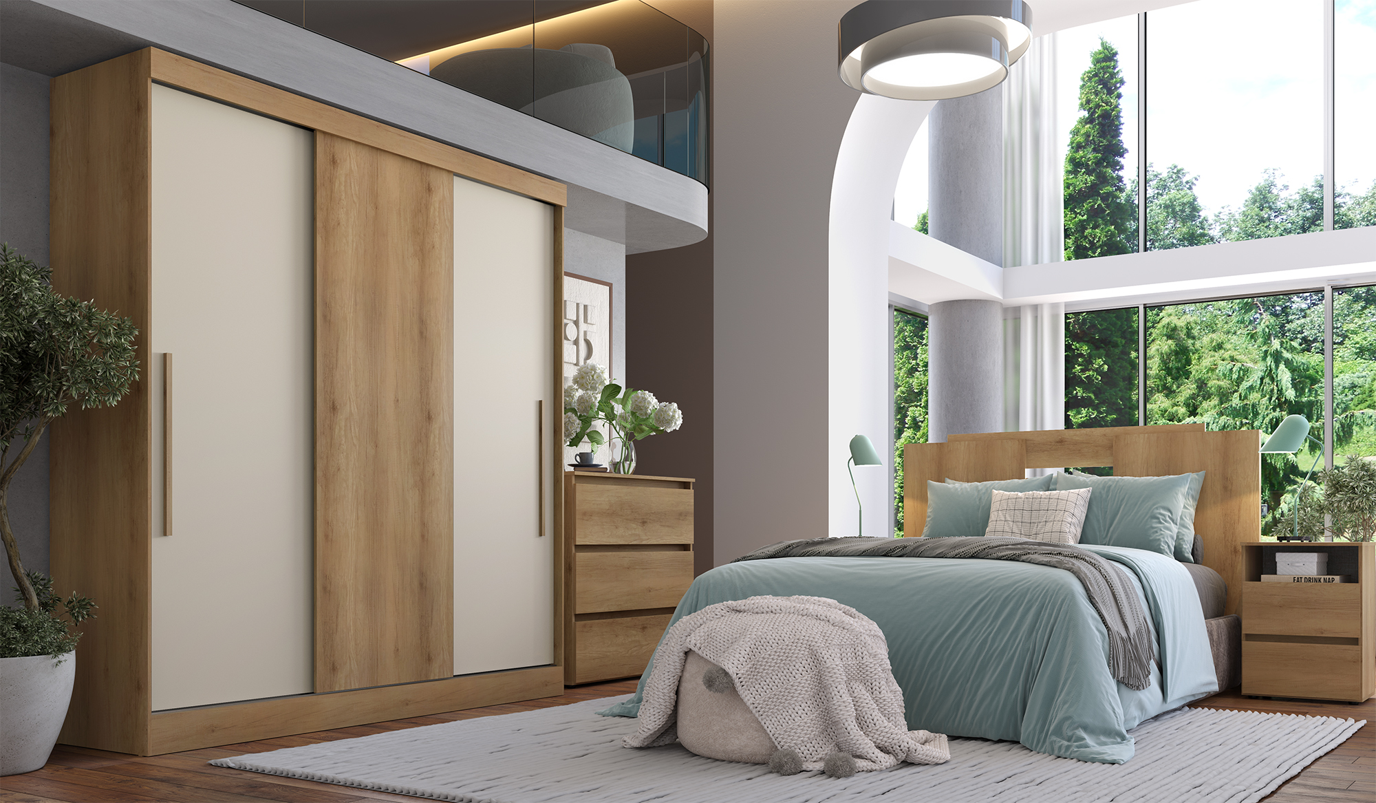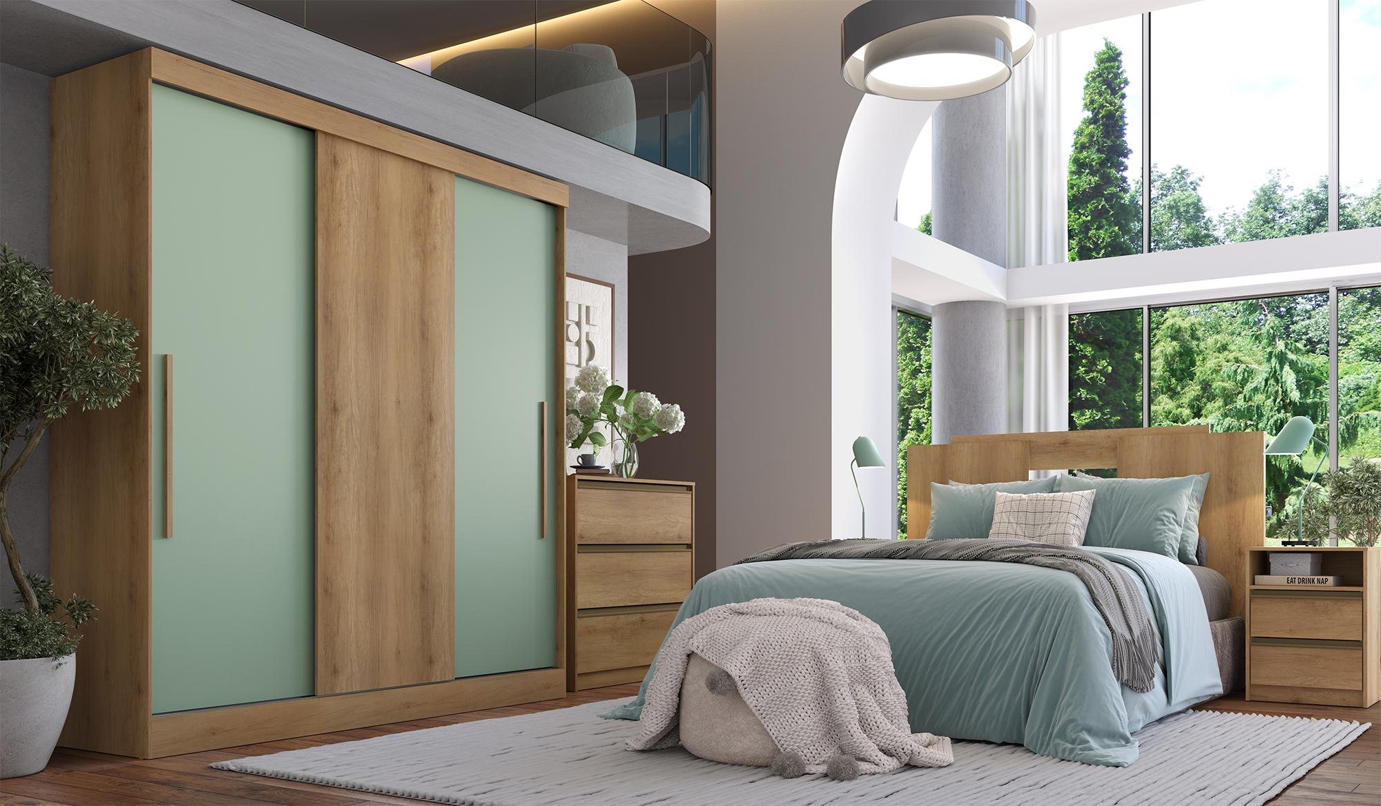 O roupeiro Vision é um produto de conceito contemporâneo, que conjuga beleza e criatividade. É constituído de 3 portas de correr. Seu amplo espaço interno possui cabideiro, excelente número de prateleiras que auxiliam na divisão e organização das roupas. Possui 2 gavetas internas que conferem conforto e praticidade ao móvel. Excelente sistema de portas de correr com base em alumínio proporcionando um movimento suave e preciso das mesmas.