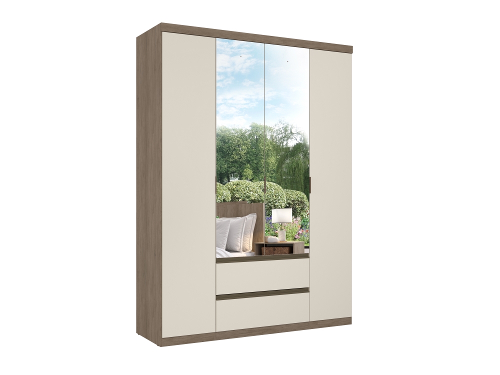 É constituído de 4 portas e 2 gavetas externas com trilho telescópico que conferem conforto e praticidade ao móvel. Seu amplo espaço interno possui cabideiro, maleiro grande e muitas prateleiras.