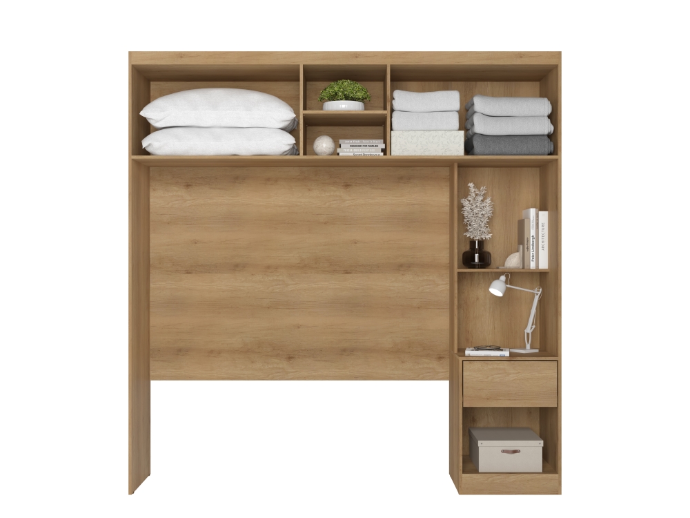 E tem mais: a grande novidade é que os componíveis são totalmente integráveis com a linha de roupeiros THB Milan, disponíveis nas versões de 4, 6 ou 8 portas, e o Roupeiro THB Aspen, ampliando ainda mais as possibilidades de composição e aproveitamento de espaço. O módulo ponte casal já possui painel de cabeceira, produzido em 15mm, garantindo uma estrutura robusta e bonita. Comporta colchões de 1,38 ou 1,58.