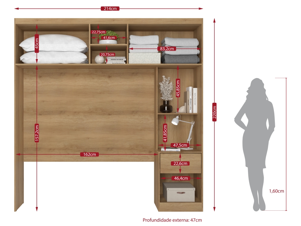 Largura: 2,14m Altura: 2,20m Profundidade: 0,47m.