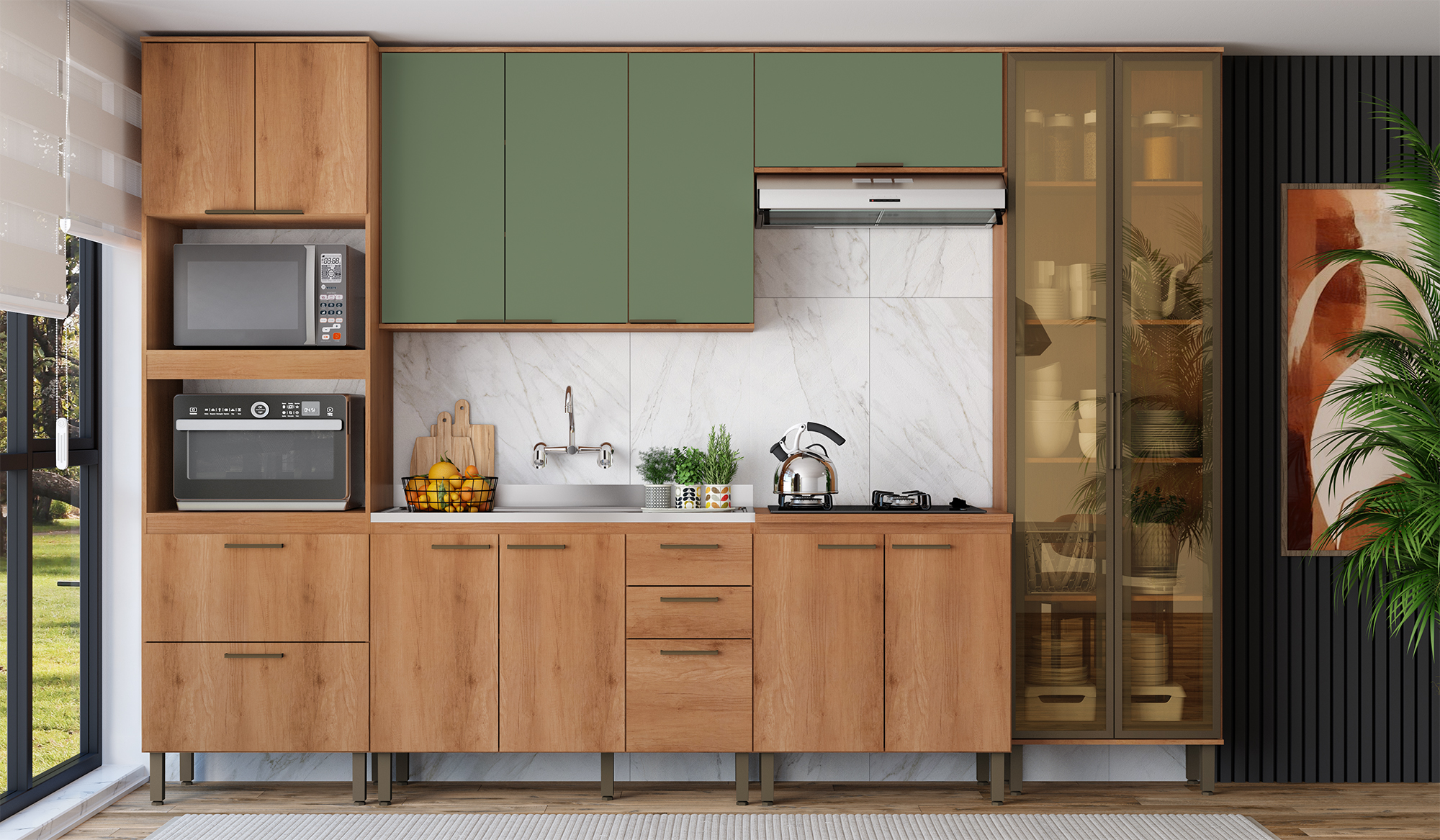 Kit 08 Cozinha Princess Freijó Sálvia Reflecta