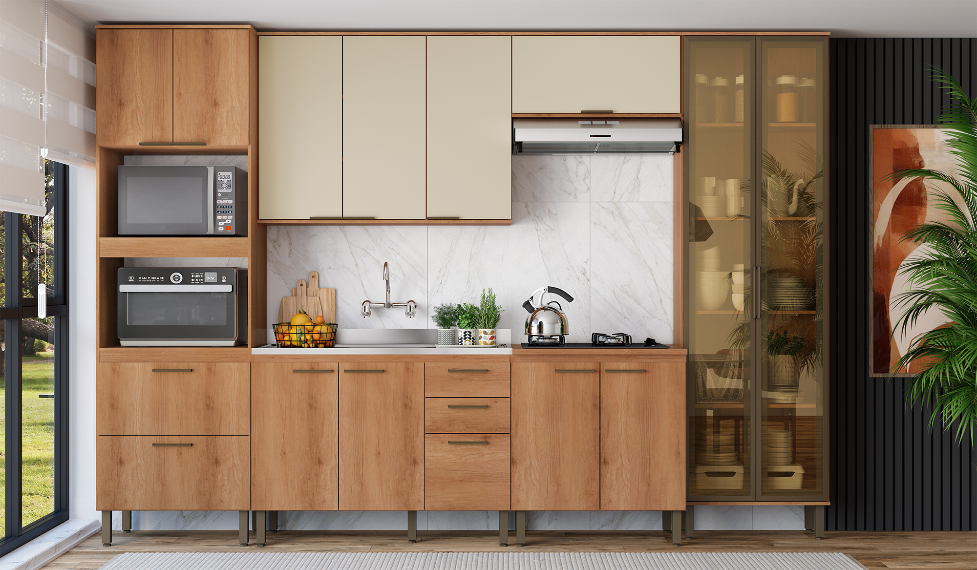 Kit 07 Cozinha Princess Freijó Areia Reflecta