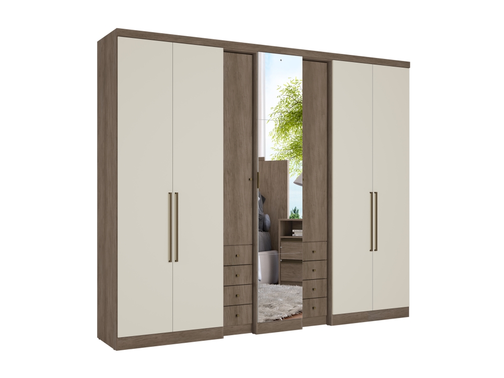O Roupeiro Absolut é perfeito para deixar tudo organizado, proporcionando uma decoração moderna e sofisticada ao ambiente. Sua divisão interna é perfeita e completa. Possui amplo espaço interno e variadas formas de organização com prateleiras, cabideiros e 2 colunas com 8 gavetas externas. Tudo isso com o toque do puxadores longos de alumínio.
