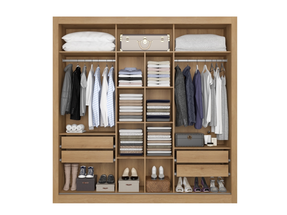 Com uma largura espaçosa de 2,27 metros, altura de 2,30 metros e uma profundidade de 0,58 metros, este roupeiro é o complemento perfeito para o seu quarto. O Roupeiro Ibiza oferece muito estilo e funcionalidade com puxadores longos em madeira nas portas laterais. Seu interno, com uma maravilhosa colmeia central, proporciona o espaço ideal de armazenamento para suas roupas e pertences. Possui ainda 4 gavetas com trilhos telescópicos, 2 cabideiros e um excelente espaço no maleiro. Adicione muita elegância ao seu dormitório com o Roupeiro IBIZA 3P da THB Móveis!
