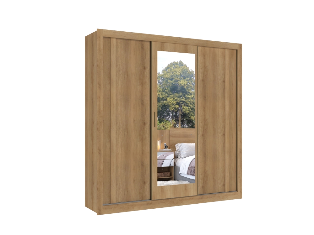 Com uma largura espaçosa de 2,27 metros, altura de 2,30 metros e uma profundidade de 0,58 metros, este roupeiro é o complemento perfeito para o seu quarto. O Roupeiro Ibiza oferece muito estilo e funcionalidade com puxadores longos em madeira nas portas laterais. Seu interno, com uma maravilhosa colmeia central, proporciona o espaço ideal de armazenamento para suas roupas e pertences. Possui ainda 4 gavetas com trilhos telescópicos, 2 cabideiros e um excelente espaço no maleiro. Adicione muita elegância ao seu dormitório com o Roupeiro IBIZA 3P da THB Móveis!
