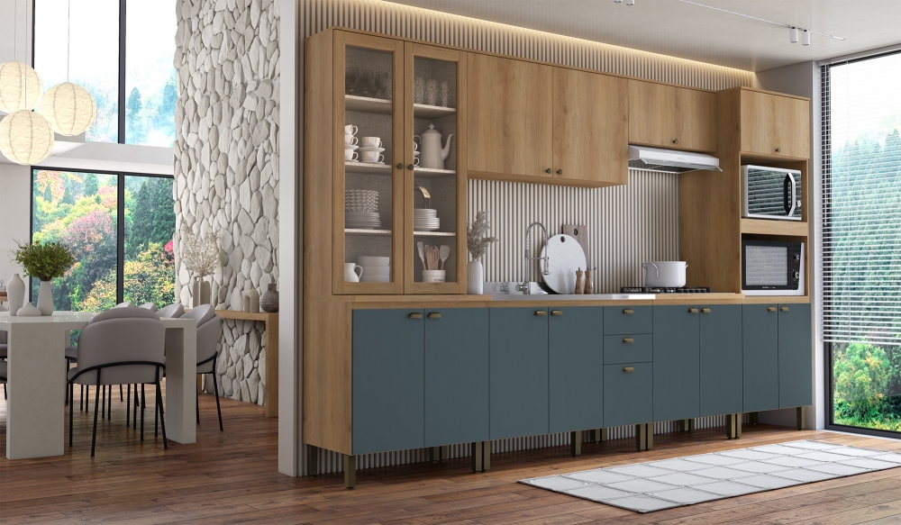 Kit 19 Cozinha Finesse Capuccino c| Azul