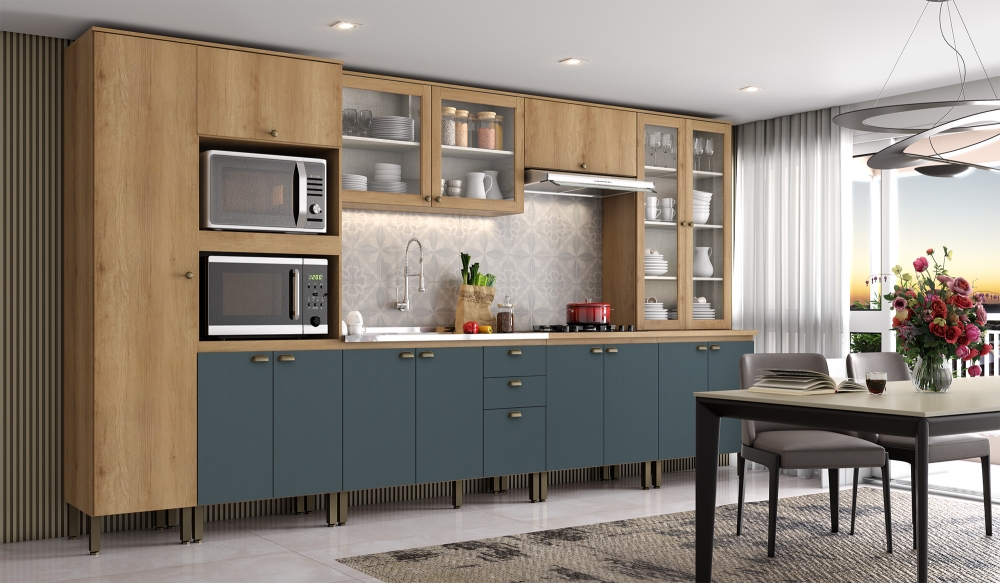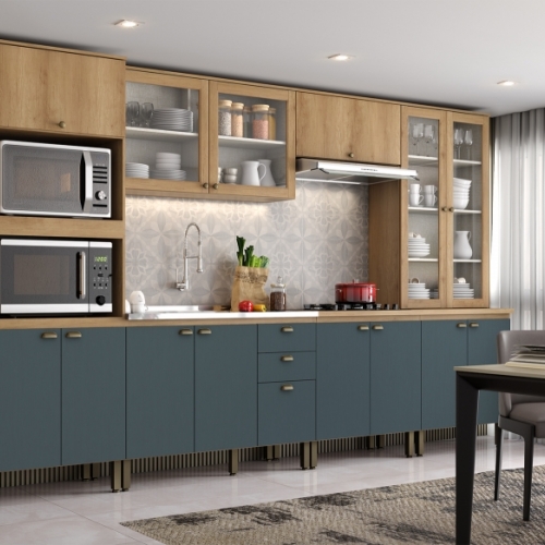 Kit 21 Cozinha Finesse Capuccino c| Azul