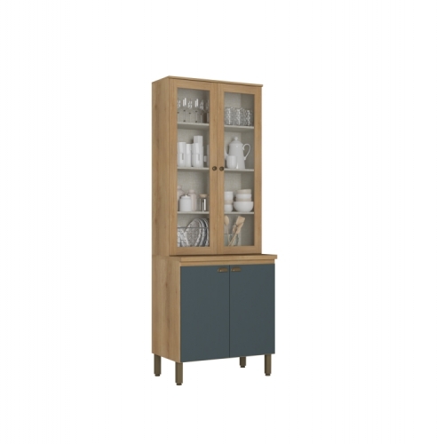 CF323V - Cristaleira 4P Finesse Capuccino c| Azul c| Vidro Incolor